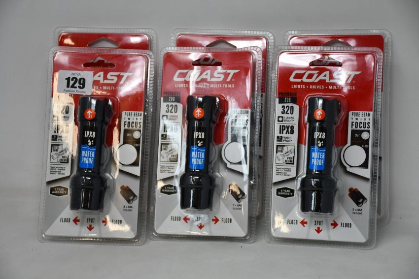 Six boxed as new Coast Polysteel 200 LED Torches.