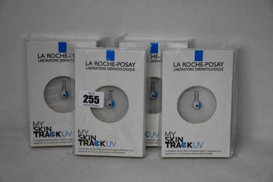 Four boxed as new La Roche-Posay My Skin Track UV wearable sensors.