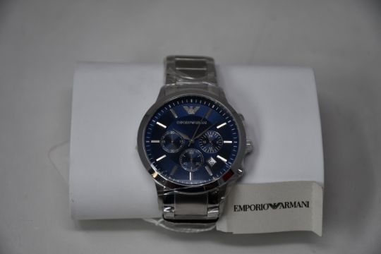A men's as new Emporio Armani AR2448 stainless steel blue dial chronograph watch (No box).