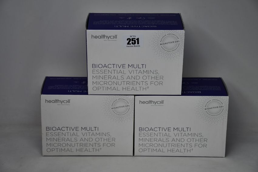 Three boxes of Healthycell Bioactive Multi gel supplements (30 servings per box).