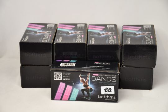 Nine boxed as new Botthms Long Resistance Bands (Colour coded resistance levels, light, medium and hard, sets of three).