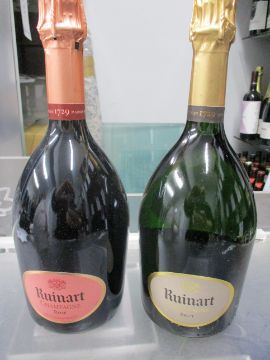Two bottles of Ruinart Champagne; Rose and Brut (750ml) (Over 18s only).