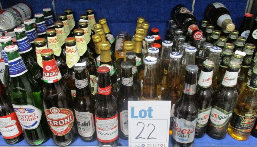 A shelf of assorted beers\ciders\ales to include Budweiser, Corona Extra, San Miguel and Birra Moretti (Over 18s only).