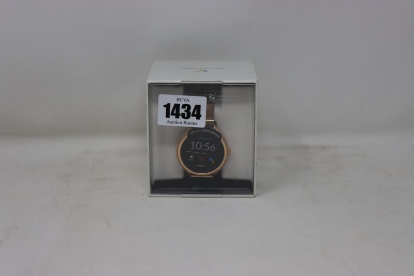 A boxed as new Fossil Gen 5E Smartwatch (Rose-Gold tone stainless steel mesh).