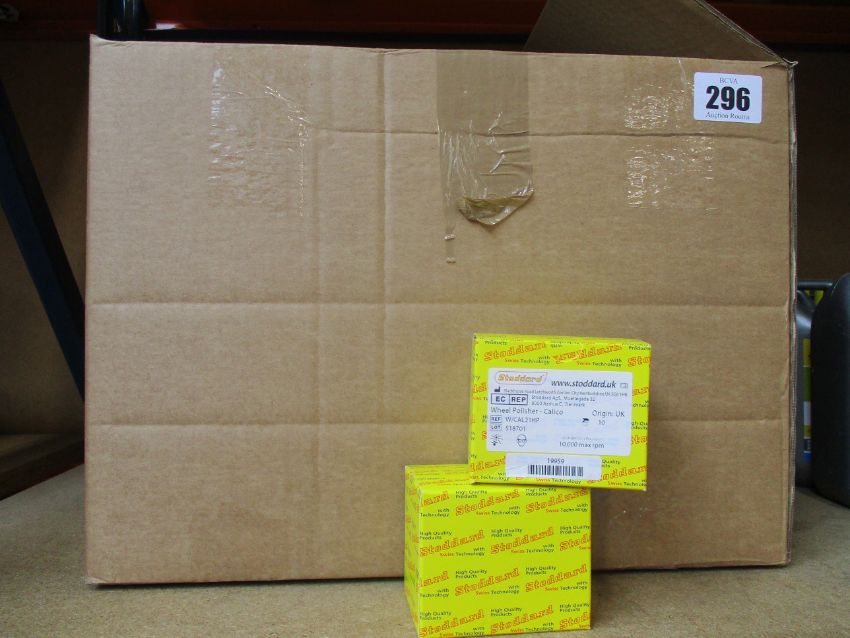 A large quantity of boxed as new Stoddard cotton yarn and calico wheel polishers (Approximately 80 items).