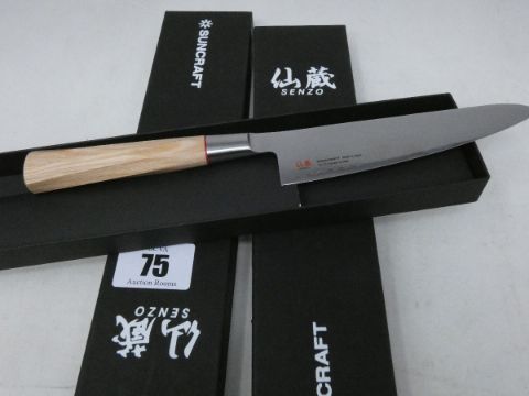 Two boxed as new Senzo Suncraft small santoku knives (Over 18s only).