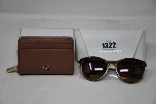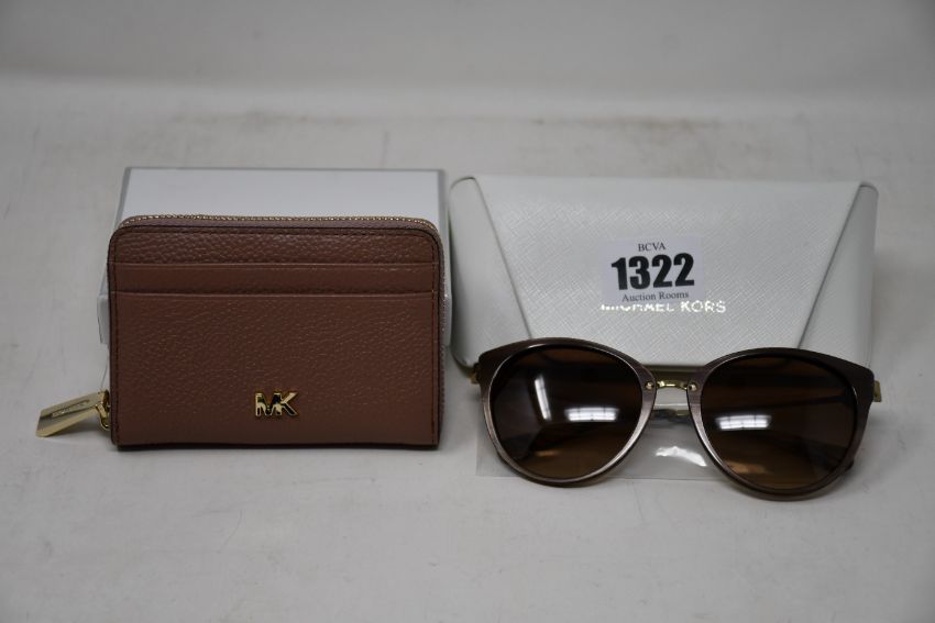 A pair of as new Michael Kors sunglasses and a Michael Kors small dark fawn zip round coin/card purse.