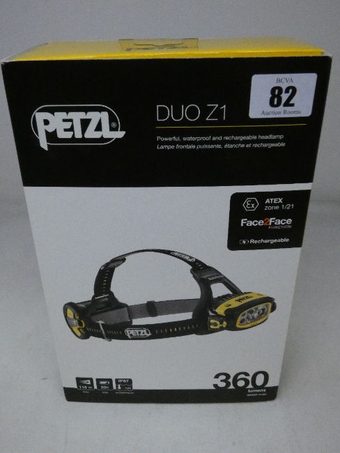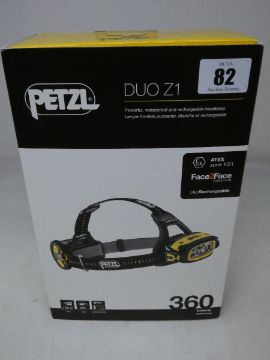A boxed as new Petzl Duo Z1 powerful, waterproof and rechargeable headlamp.