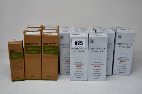 Ten as new Jigott Whitening UV sun block SPF 50 (Two boxes with dents) and nine as new Centella Green Level safe sun products.