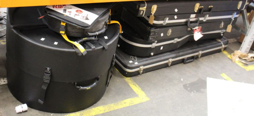 Seven cases for guitars, cables and keyboards.