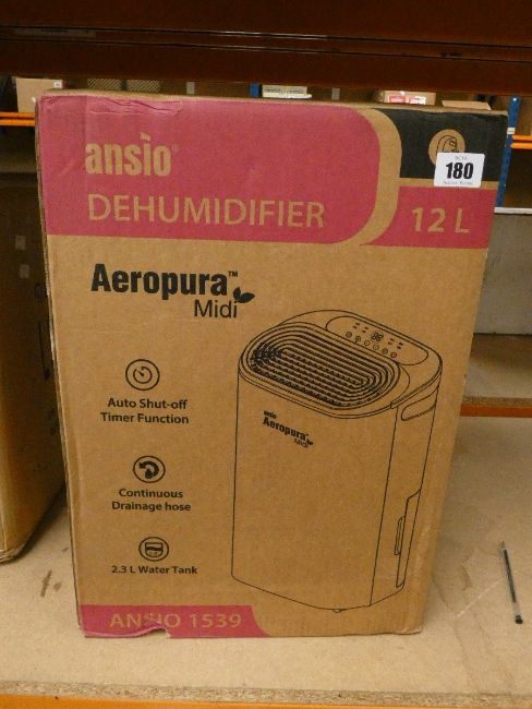 A boxed as new Ansio 1539 12ltr Dehumidifier.