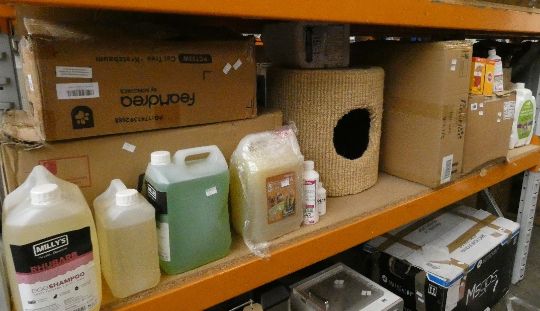 A quantity of miscellaneous pet and animal welfare related items to include a boxed as new PawHut Cat Tree and Pedigree Vital Protection 40 x 100g (11/22).