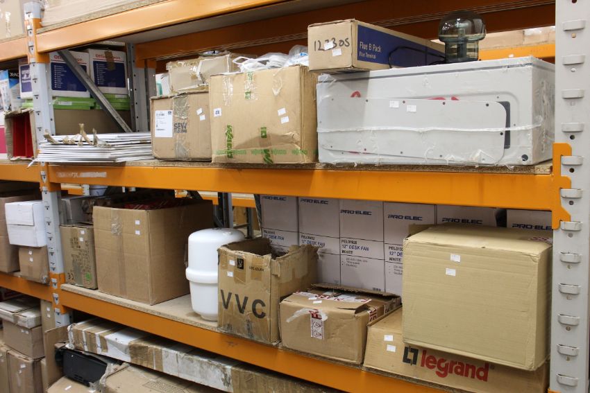 A quantity of miscellaneous items, mainly electrical related to include LRED Panel and 12" Desk Fans.