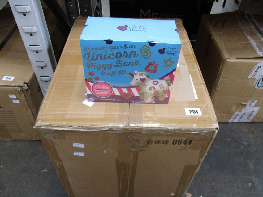 Thirty boxed as new Purple Ladybug Unicorn Piggy Bank Craft Kits.