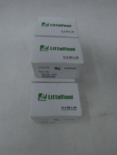 Five boxes of two hundred as new Littelfuse Hamlin Reed Switches TRW Sensors (P/N: 59170-510) (Box sealed).