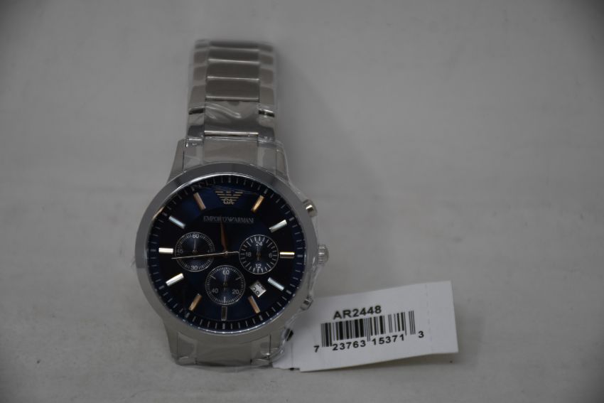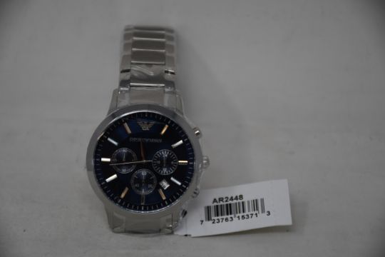 A men's as new Emporio Armani AR2448 stainless steel blue dial chronograph watch (No box).
