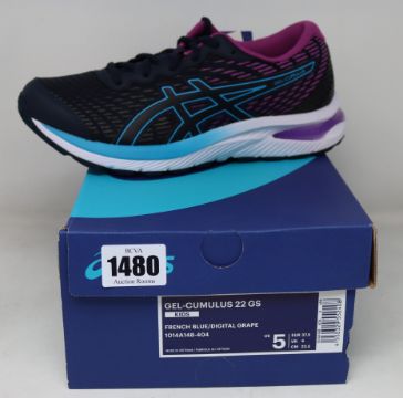 Four pairs of children's as new Asics Gel-Cumulus 22 GS trainers (UK 3, 4, 5, 5.5).