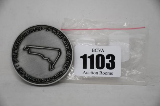 One Mercedes-Benz Silver Arrows 100th Win - 2019 Mexican Grand Prix commemorative coin (1st Place Lewis Hamilton, 3rd Place Valtteri Bottas, 1759/2190).