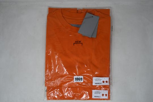Two as new A.C.W. Essential T-shirts in puffin orange (S, M - RRP £95 each).