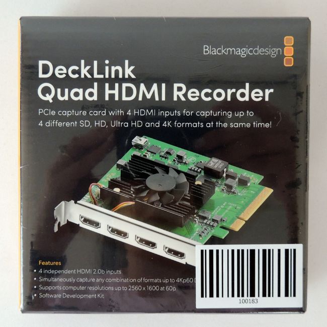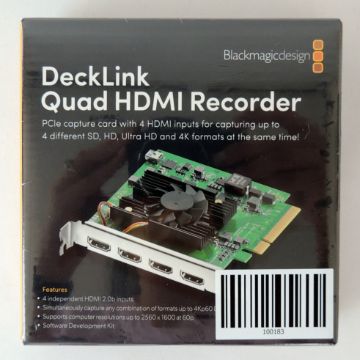 A boxed as new Blackmagic Design DeckLink Quad HDMI Recorder, box sealed. RRP £480.
