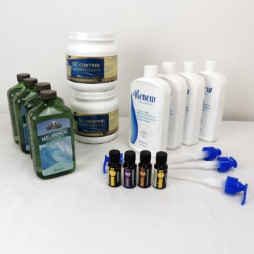 As new, various Melaleuca essential wellness oils and supplements to include Ecosense Melamagic cleaner, GC Control food supplement, Renew intensive skin therapy, Screw on lid hand dispenser and Pure essential oil