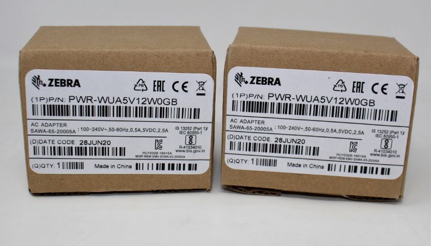 Two boxed as new Zebra PWR-WUA5V12W0GB Wall Chargers (Cables not included).