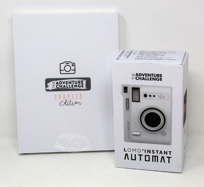 A boxed as new The Adventure Challenge & Lomography Lomo Automat Instant Camera (Box opened) and an as new The Adventure Challenge: Couples Edition Book (Sealed, some damage to packaging).