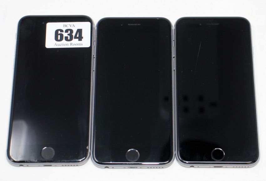 Two pre-owned Apple iPhone 6s (Global/A1688) 32GB in Space Grey and one pre-owned Apple iPhone 6s (Global/A1688) 64GB in Space Grey (All iCloud activation clear. All with some damage to screen glass/casing).