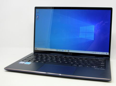 A pre-owned ASUS ZenBook Flip UX362FA13.3" FHD Convertible Touchscreen Laptop in Royal Blue/ Sand Blast with Intel i5-8265 Processor, 8GB RAM, 256GB SSD running Windows 10 Home (Some superficial scratches to casing lid. Power adaptor and UK power cable included).