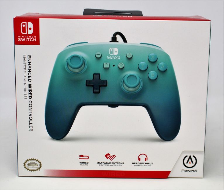 Two boxed as new Nintendo Switch Enhanced Wired Controller in Aquatic Fantasy (Boxes sealed).