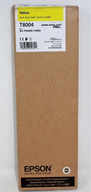 A boxed as new Epson T8004 (700ml) UltraChrome PRO Yellow Ink Cartridge for SureColor SC-P10000/SC-P20000 Printers (C13T800400) (Some damage to box).