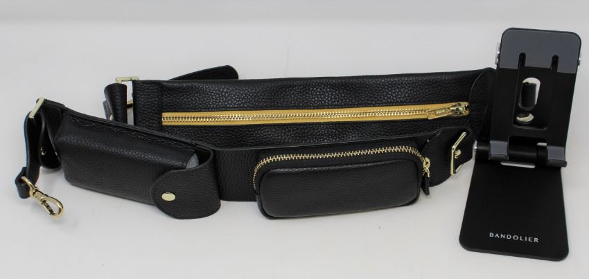 An as new Bandolier Billie Crossbody Utility Strap in Black/Gold (Strap only, phone case not included) and a boxed as new Bandolier Phone/Tablet Stand in Black/Silver.