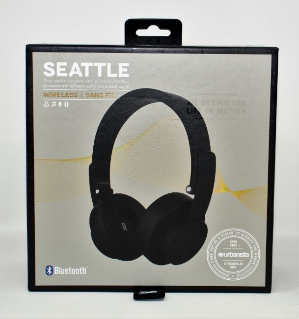 A boxed as new pair of Urbanista Seattle Wireless Bluetooth Headphones in Black (Box sealed).