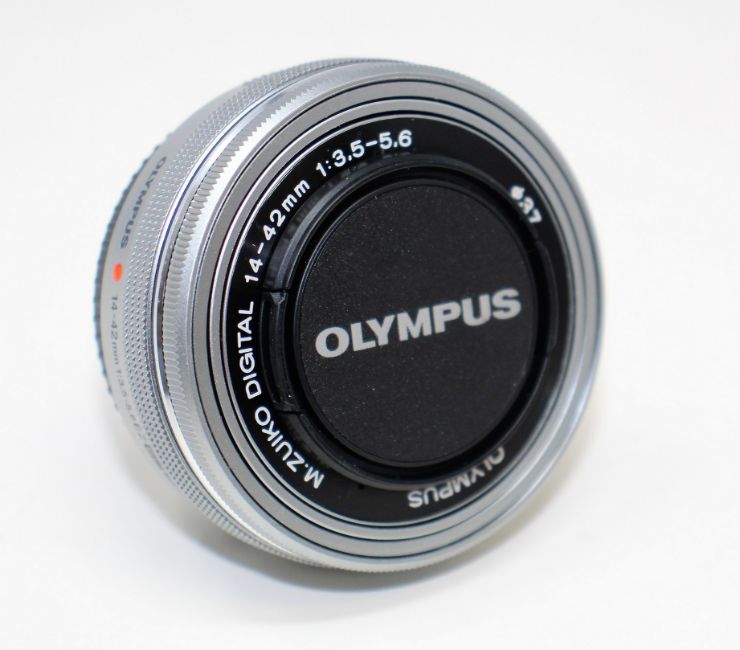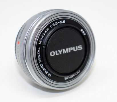 A pre-owned Olympus M. Zuiko 14-42mm f/3.5-5.6 EZ ED MSC Micro Four Thirds Lens.