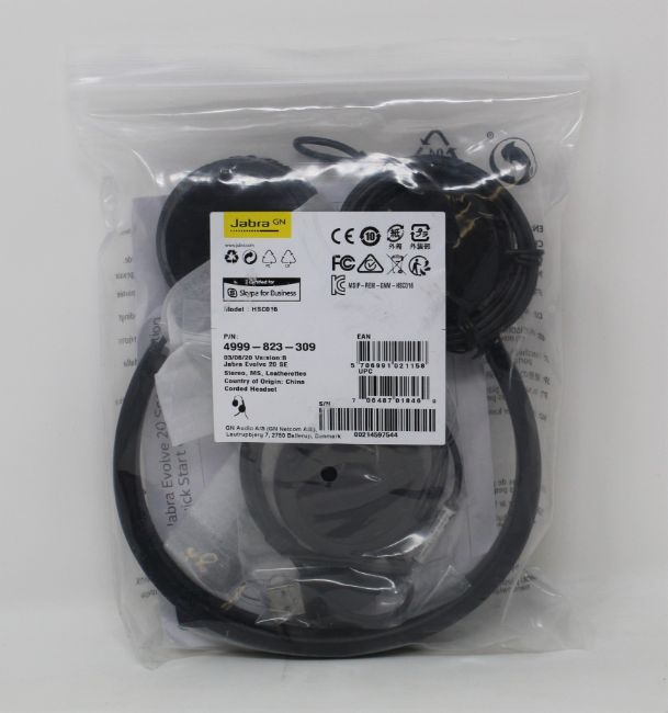An as new Jabra Evolve 20 SE MS Stereo Binaural Headset (P/N: 4999-823-309).