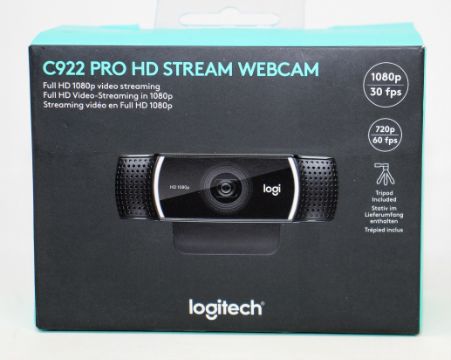 A boxed as new Logitech C922 Pro HD Stream Webcam (Tripod included) (Box sealed).