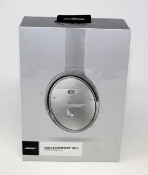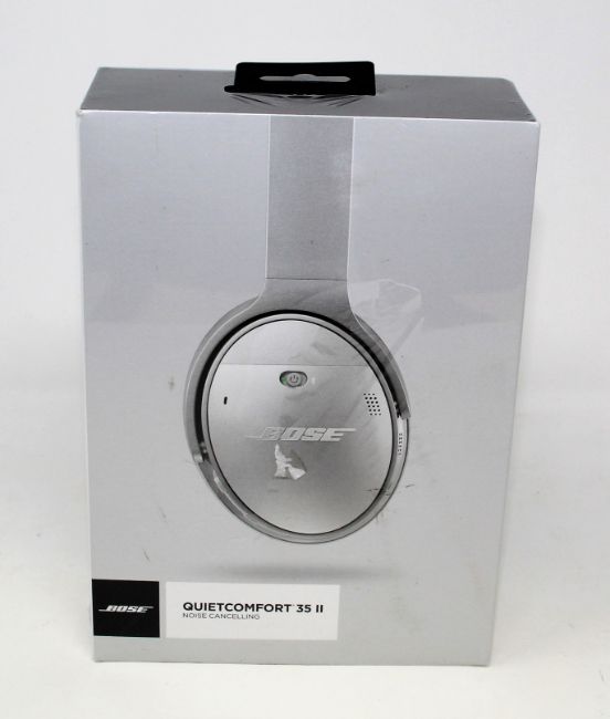 A boxed as new pair of Bose QuietComfort 35 II Wireless Noise Cancelling Headphones in Silver (Box sealed, some damage to outer packaging) (Serial: 077062Z83091958AZ).