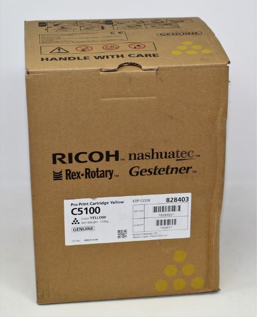 A boxed as new Ricoh C5100 Yellow Toner Cartridge (Product Code: 828403).