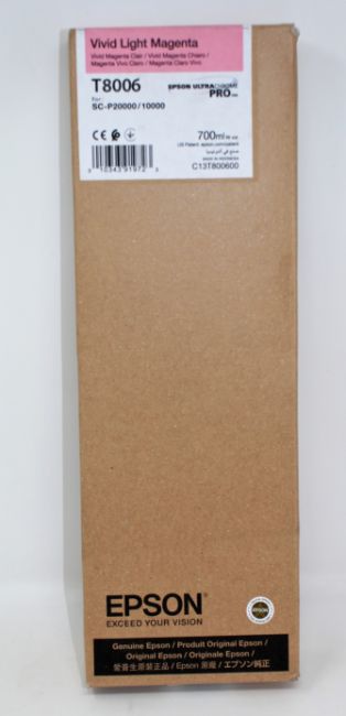 A boxed as new Epson T8006 (700ml) UltraChrome PRO Vivid Light Magenta Ink Cartridge for SureColor SC-P10000/SC-P20000 Printers (C13T800600) (Some damage to box).
