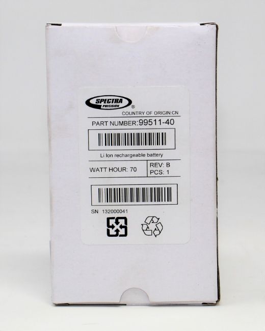 A boxed as new Spectra 99511-40 Rechargeable Lithium-Ion Battery for Focus 35 Robotic Total Station.
