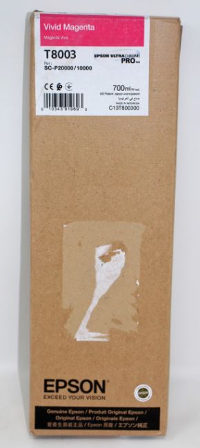 A boxed as new Epson T8003 (700ml) UltraChrome PRO Vivid Magenta Ink Cartridge for SureColor SC-P10000/SC-P20000 Printers (C13T800300) (Some damage to box).