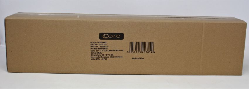 Twenty five boxed as new Core Type-C to USB Cable 3M White Cables (Item code 20910810) (Box sealed).