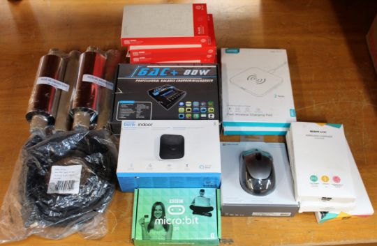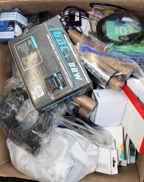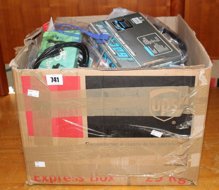 COLLECTION ONLY: A box of assorted as new and pre-owned small electrical items and accessories (All items sold as seen).