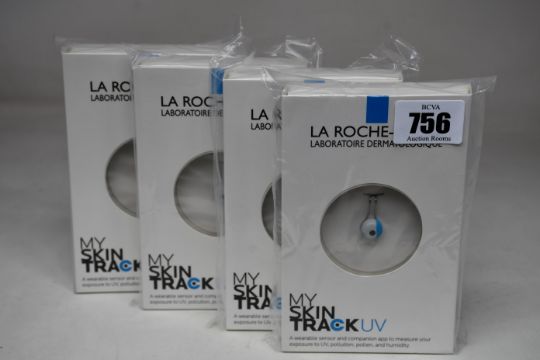 Four boxed as new La Roche-Posay My Skin Track UV wearable sensors.