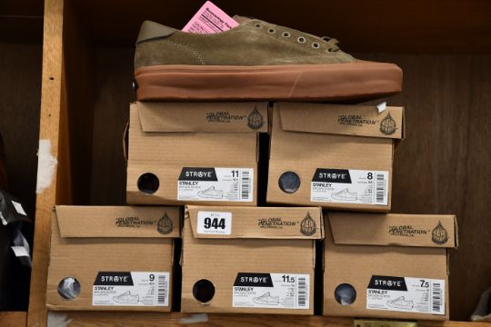 Five pairs of as new Straye Stanley brown suede sneakers (UK 6.5, 7, 8, 10, 10.5).