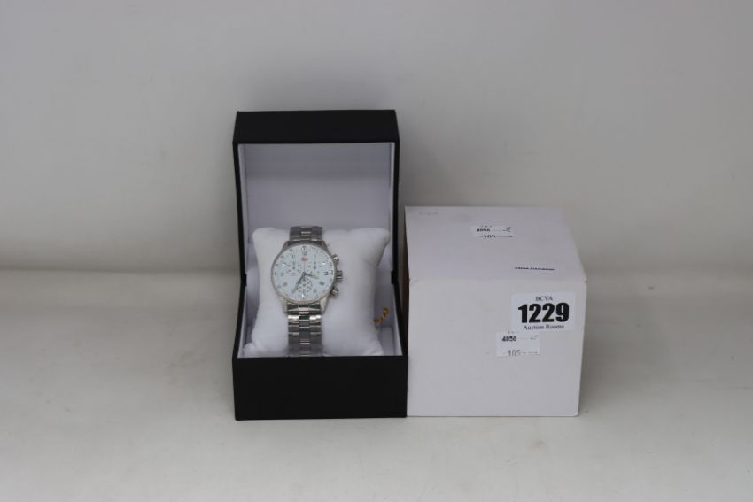 An as new Swiss Made Leica chronograph watch in silver.