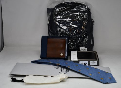 An as new Hackett London small travel bag, Hackett London leather wallet, Fossil leather wallet and Vivienne Westwood tie.