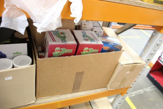 Assorted as new British film/TV novelties to include mugs, card games, metal posters and glasses from franchises such as The Muppets, Doctor Who, Mr Benn, Sesame Street and Minions.