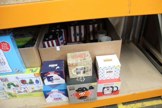Assorted as new British film/TV novelties to include mugs, money boxes and puzzles from franchises such as Pixar, Marvel, Dumbo, Toy Story and Only Fools and Horses.