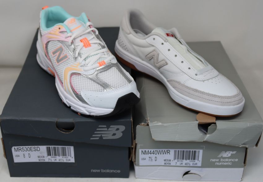 Two pairs of as new New Balance trainers; NM440WWR (UK 7) and MR530ESD (UK 7.5).